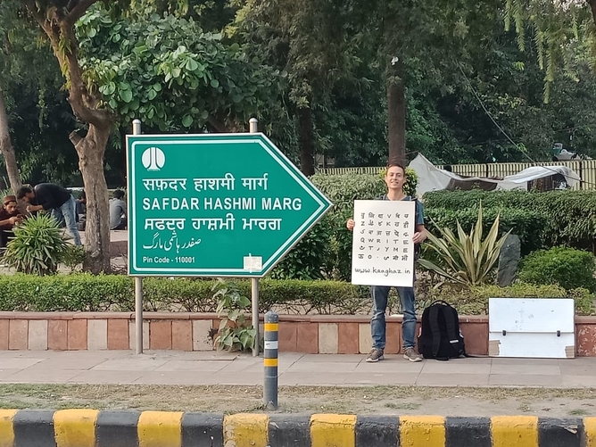 We spent a week moving around Delhi, armed with chalk and a djembe, putting up our puzzle and talking to people about scripts.